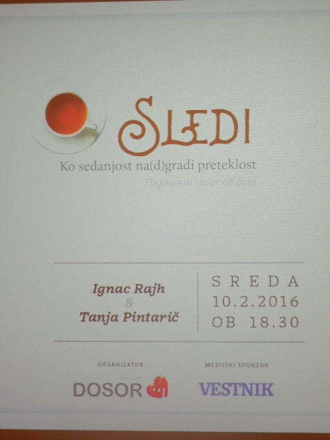 V sredo, 10. februarja zvečer, je bila v DOSOR-ju, Domu starejših občanov Radenci, na programu povsem nova družabna prireditev, ki bi naj postala DOSOR-jeva stalnica. Gre za pogovore ob čaju »Sledi – Ko sedanjost na(d)gradi preteklost«, ko bi naj z besedo in sliko (za)čutili povezovanje, navdih in skupne strasti med generacijami. Vse to bi se naj odvijalo pod geslom: »Z nami se ni vse začelo in se z nami ne bo vse končalo…«