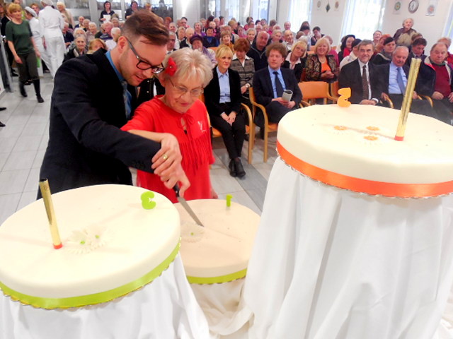 Iz domske kuhinje so kuharice in kuharji pripeljali slavnostno torto, ki sta jo skupaj razrezala stanovalka Marjana Papp in direktor Gregor Žigon. Marija Breznik, ki domuje v Domu pod gorco že peto leto, je v imenu vseh stanovalk in stanovalcev izrekla zahvalo za odlično počutje v domu.