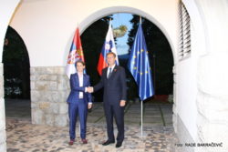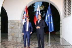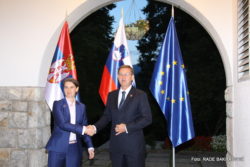 Ekselencija gospođa Ana Brnabić, predsednica Vlade Republike Srbije, gost ekselencije  Mira Cerara, predsednika Vlade Republike Slovenije na Bledu 4. septembra 2017 u vili Bled.