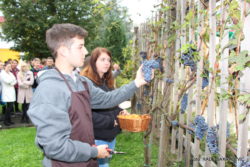 Danes, v sredo 20.9.2017 je na Srednji šoli za gostinstvo in turizem v Radencih potekala trgatev grozdja, ki je zraslo na trti na dvorišču šole. Trta je cepič najstarejše trte na svetu z mariborskega Lenta. Pridni učenci srednje gostinske šole pod vodstvom ravnateljice Janje Prašnikar Neuvirt in profesorja Petra Pertocija skrbijo za njo. Danes so pobrali rekordnih 10. kilogramov grozdja in iz njega bodo dobili kvalitetno vino. Vino bodo imeli za protokolarne namene.