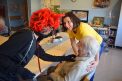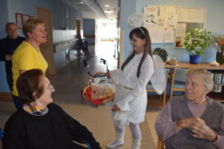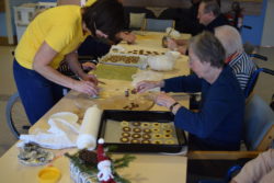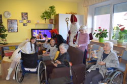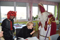 Je pa prvi dan peke, na svoj praznik, Miklavž obiskal vse domske oddelčne kuhinje, kjer so pekli pecivo, v njegovem spremstvu pa sta bila še angelček in peklenšček. Prvi dobri mož decembra je ob tem vse povprašal o njihovi pridnosti v minevajočem letu 2017, angelček je pridne tudi obdaril (domači keksi !), a peklenšček je opomnil na potrebno pridnost tudi v prihajajočem letu 2018. S tovrstno vsebino obiska se je Miklavževa trojka opoldne podala še k vsem zbranim pri kosilu v veliki DOSOR-jevi restavraciji.