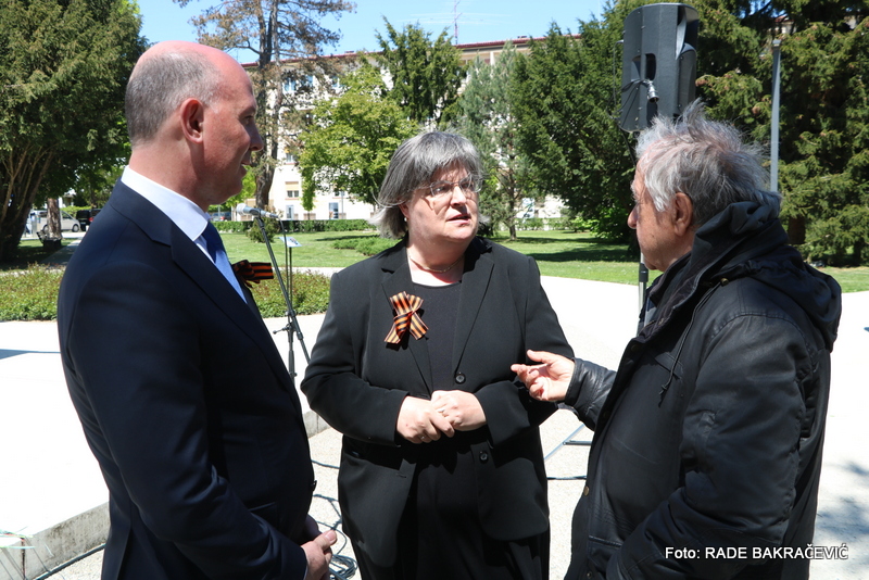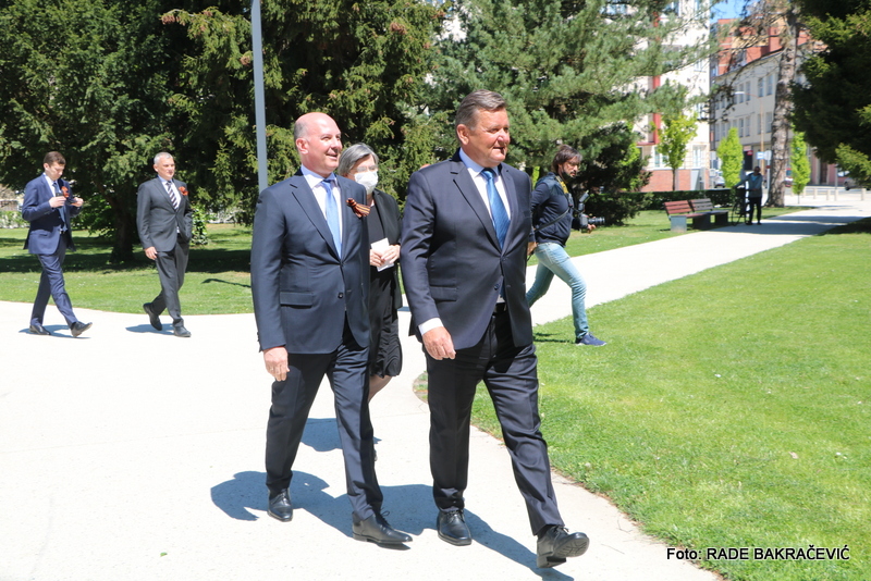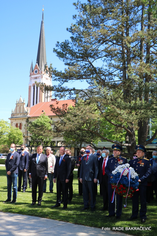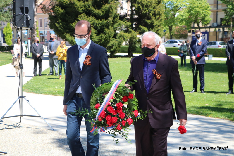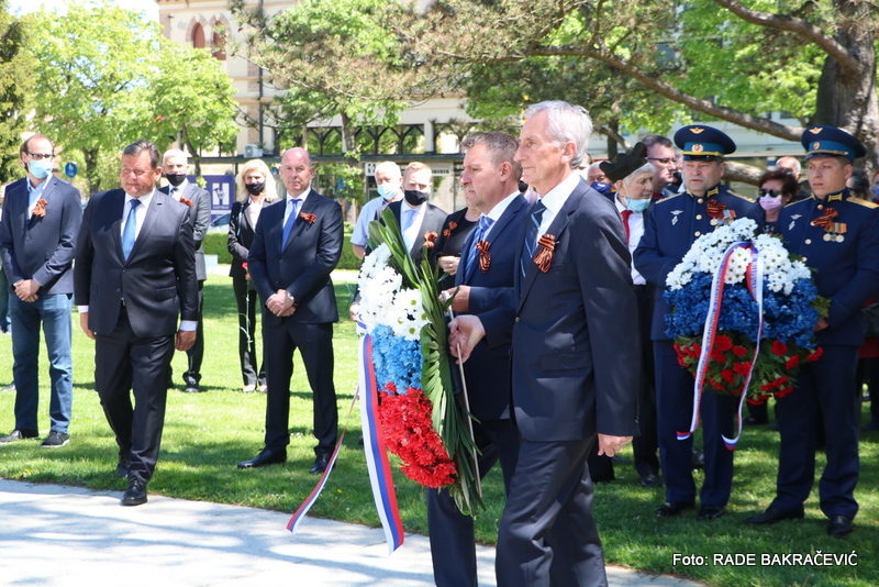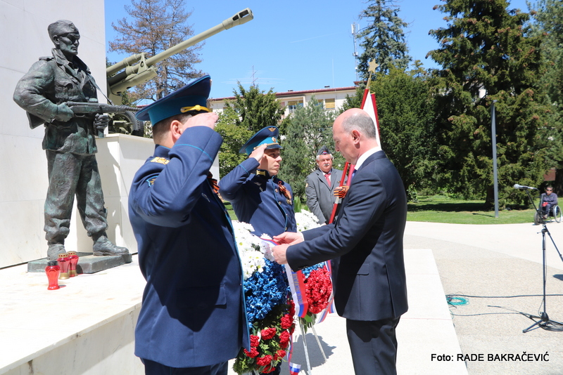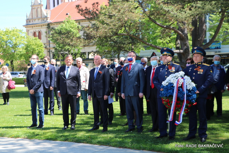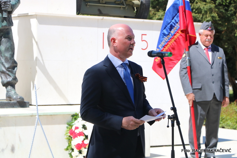 9. Maja smo se po ustaljeni tradiciji zbrali tu pri spomeniku Osvoboditeljem – sovjetskemu vojaku in jugoslovanskemu partizanu, da bi obeležili naš skupni veliki praznik – Dan Zmage.