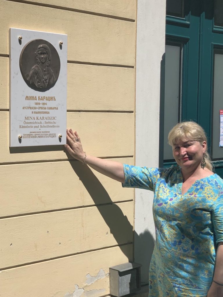 “ Spomen-ploča Mini Karadžić, ćerci reformatora srpskog jezika Vuka Stefanovića Karadžića, čijji se spomenik nalazi ispred iste zgrade okružen cvećem i zelenilom naš je dar Austrijancima, ali i austrijskim Srbima i naš doprinos kulturi sećanja na srpske velikane u Beču, prestonici svih Srba u rasejanju. Autor spomen-ploče je Borivoje Lukić, vajar iz Beograda”, rekla nam je akademik Svetlana Matić.