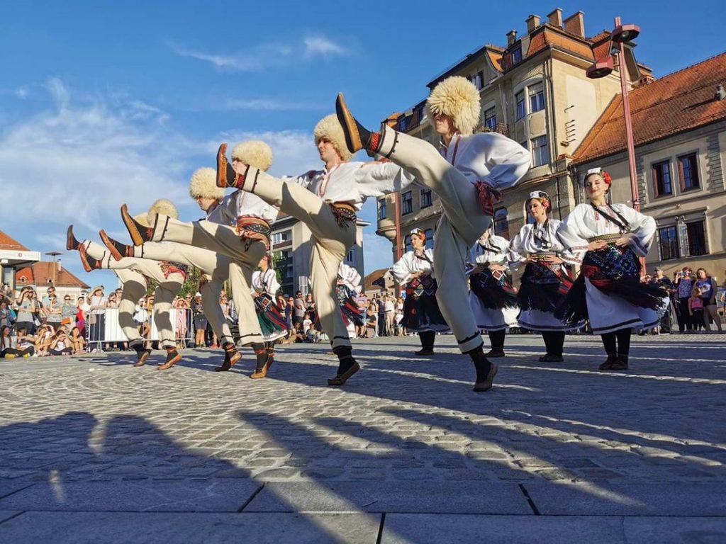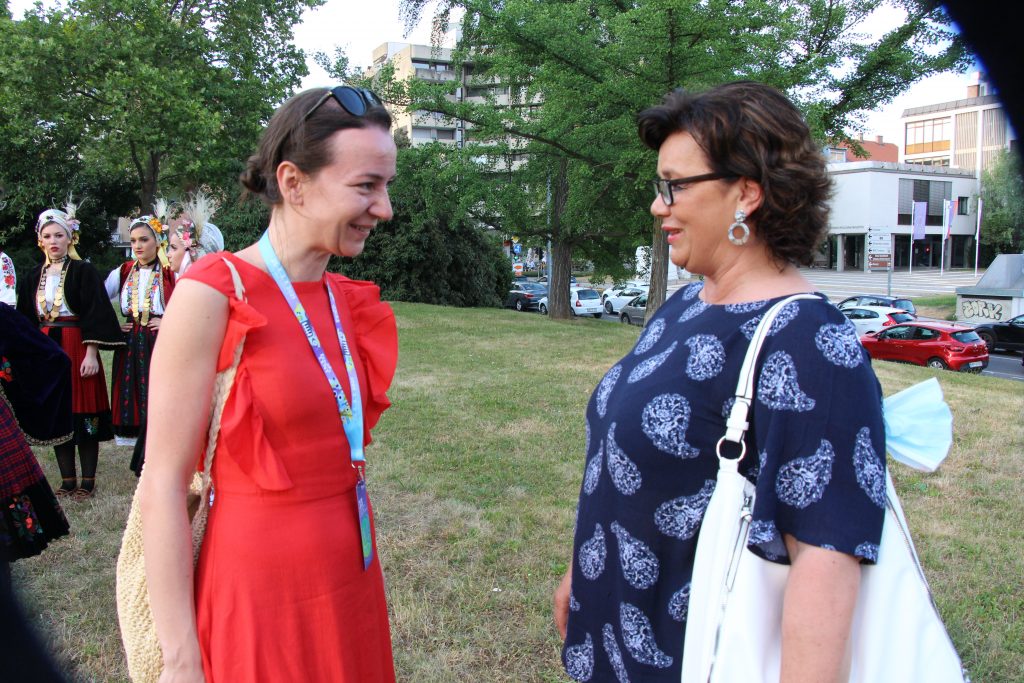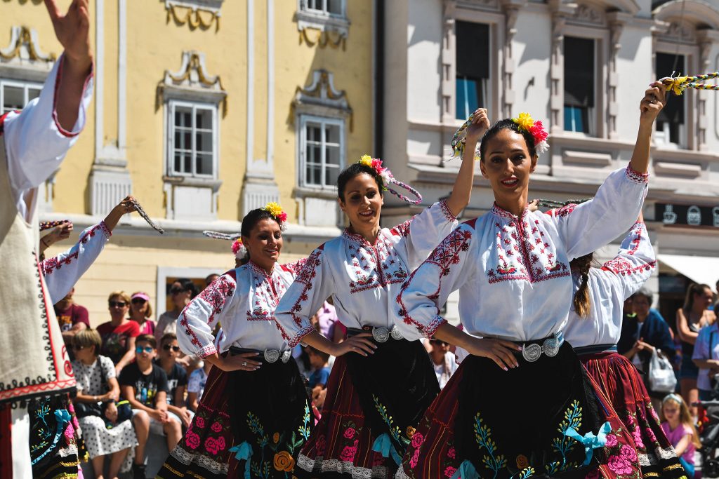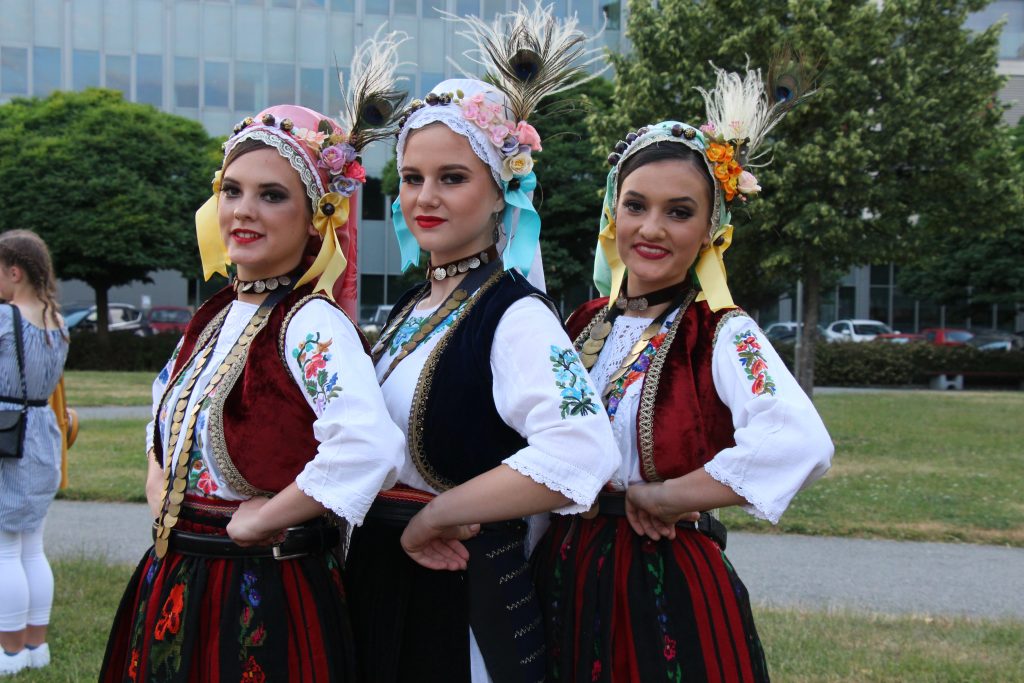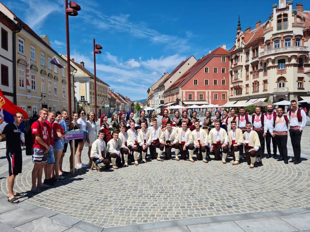 FOLKLORISTE IZ SRBIJE POZDRAVILA JASMINA KRAPŠE, PREDSEDNICA SRBSKEGA KULTURNEGA DRUŠTVA MARIBOR IN RADE BAKRAČEVIĆ, PREDSEDNIK ŠTAJERSKE SKUPNOSTI IZ MARIBORA.
