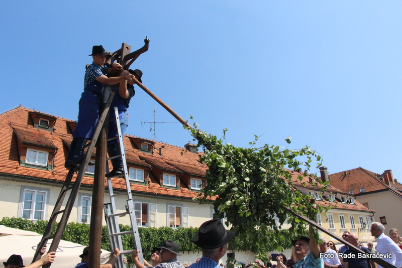 Maribor: 24. 7. 2021 – Brači iz Malečnika so danes 24. julija postavili klopotec na Lentu kje raste najstarejša trta na svetu, simbol štajerskega vinogradništva.