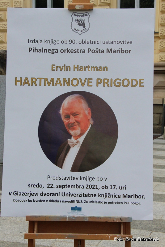 Maribor: 22. september – Pri založbi Kulturni center Maribor je izšla zanimiva knjiga, posvečena 90. obletnici ustanovitve Pihalnega orkestra »Pošta« Maribor, v kateri njen legendarni kapelnik Ervin Hartman niza pripovedi o svojem več kot sedem desetletij dolgem glasbenem udejstvovanju.