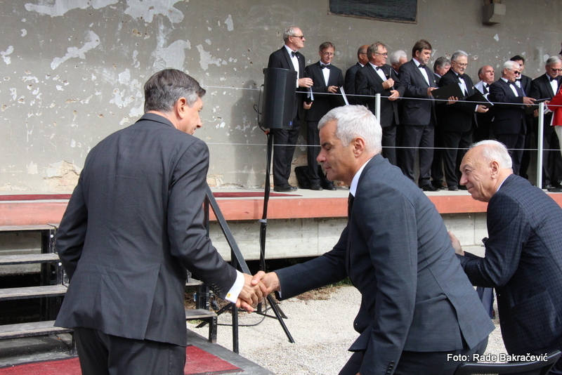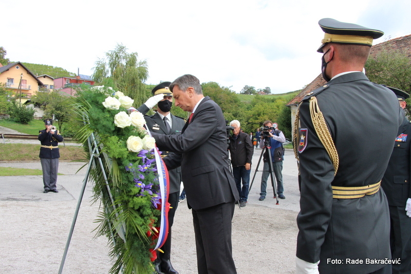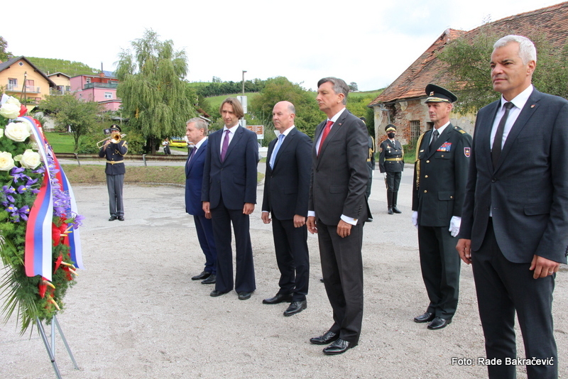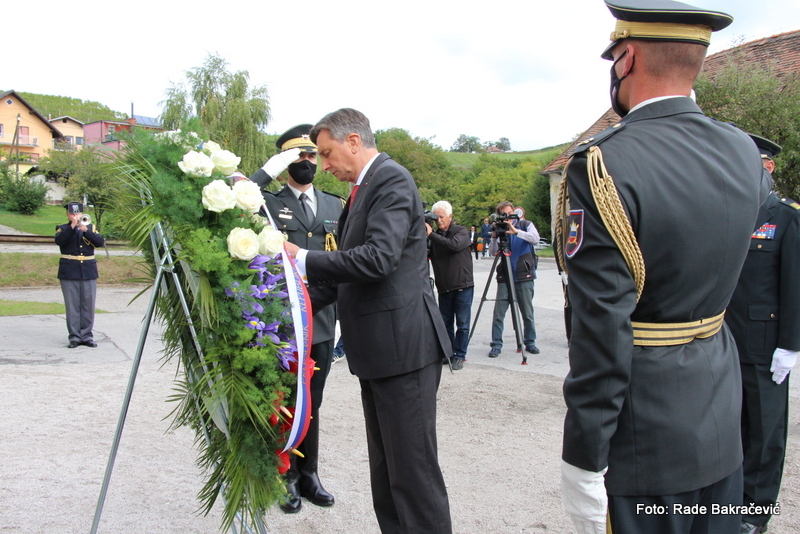 Pred slovesnostjo je predsednik republike položil venec k spominskemu obeležju pred nekdanjim nacističnim taboriščem Stalag XVIII-D.