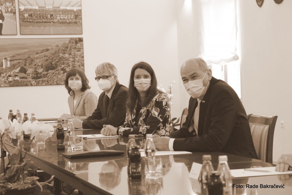Predsednik vlade Janez Janša se je zjutraj v mestni hiši v Lendavi sprva srečal z lendavskim županom Janezom Magyarjem, s katerim sta spregovorila o nekaterih aktualnih temah.