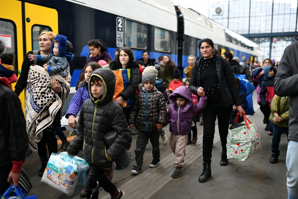 Na Zapadnu železničku stanicu („Njugati“) u Budimpeštu iz Ukrajine dnevno dolaze stotine izbeglica, vozovi koji ih prevoze saobraćaju na svaka dva sata