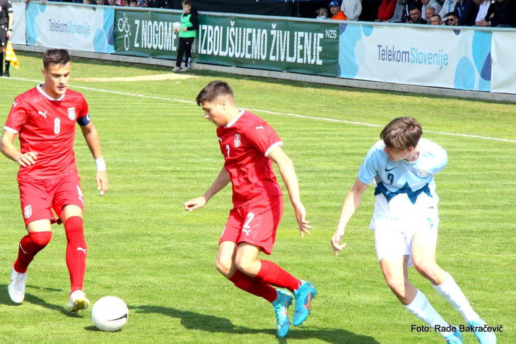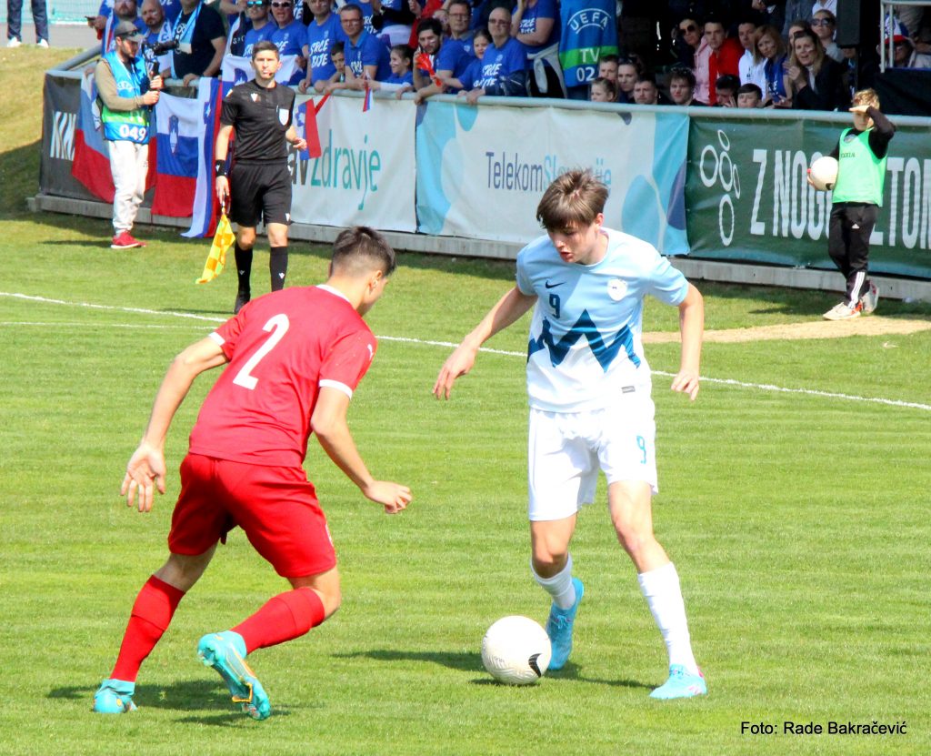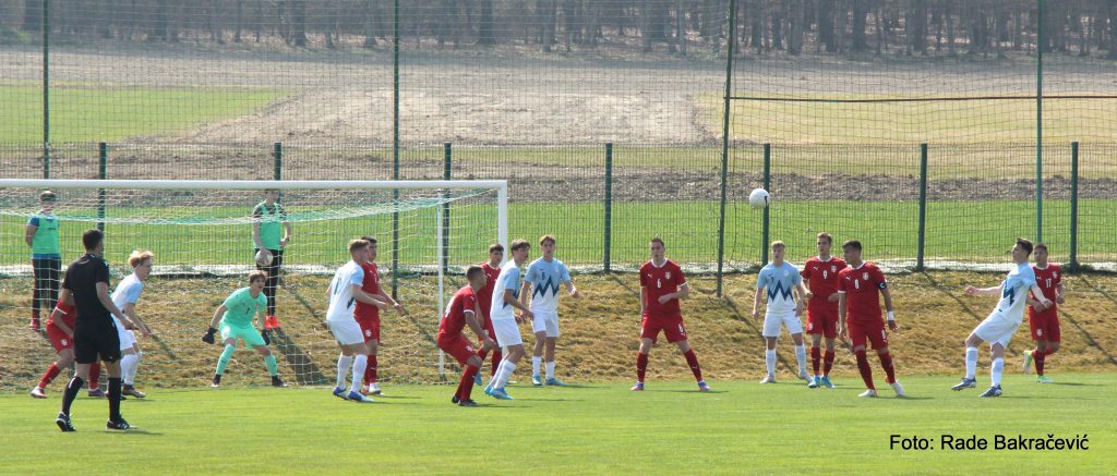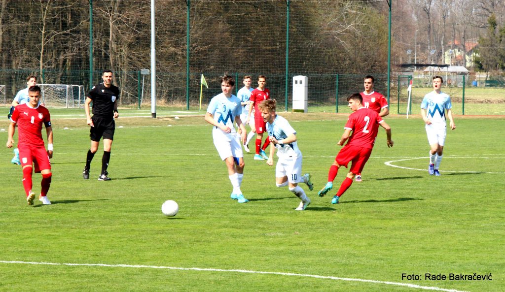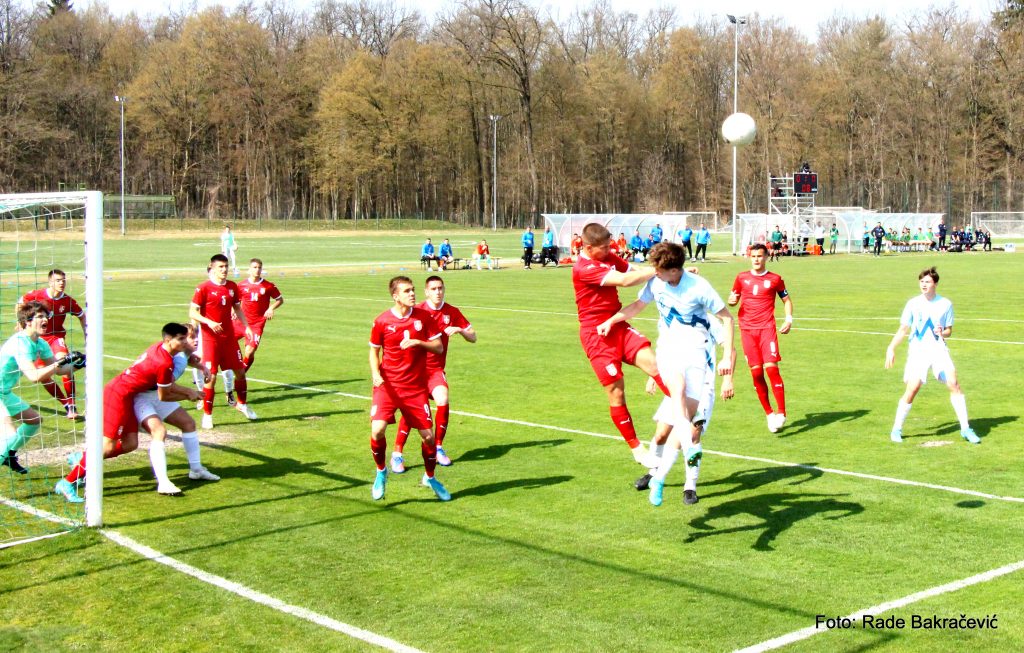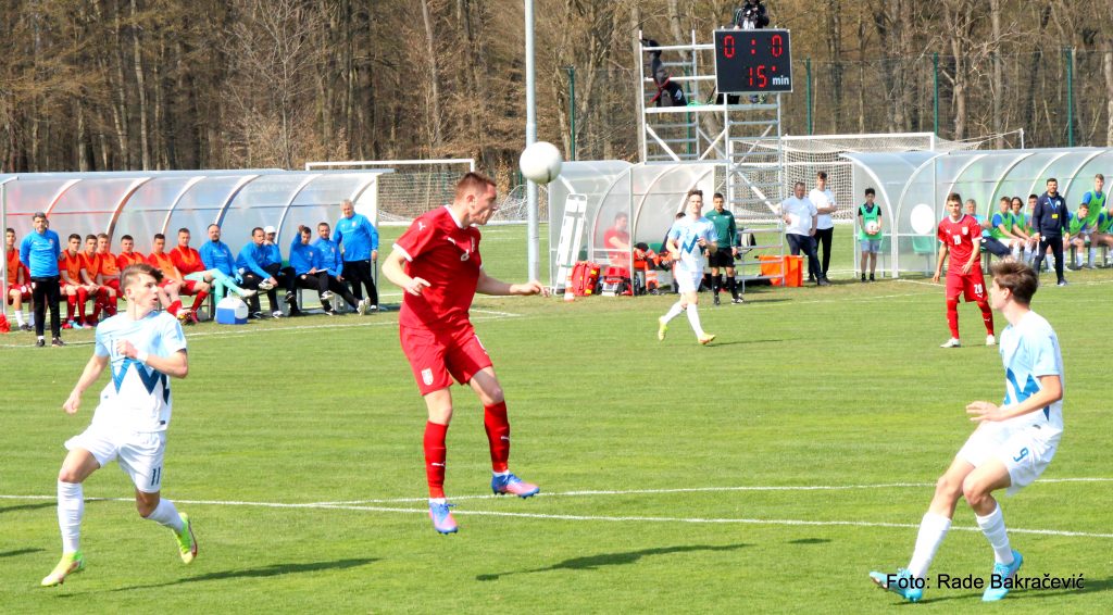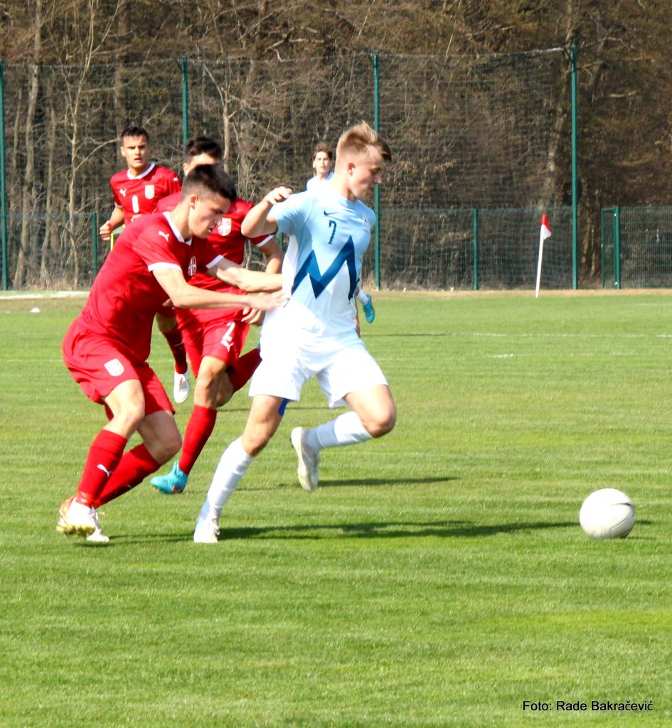 Srbi so prvo nevarnejšo akcijo izpeljali v 11. minuti. Mark Stojinović je žogo v zadnjem trenutku izbil pred Matejo Bubnjem, nato pa je Jovan Milošević streljal v naročje Lukasa Tomažiča. Srbi so se v novi priložnosti znašli v 17. minuti, ko je Mark Stojinović zaradi poškodbe obležal na tleh, Jovan Milošević pa je meril mimo desne vratnice Tomažiča. Pred domačim golom je bilo vroče tudi v 21. minuti, ko slovenska obramba ni uspela izbiti žoge. Jovan Mijatović je žogo poslal pred vrata, tam pa jo je zgrešil Mateja Bubanj, ki pa je bil pred tem v prepovedanem položaju.