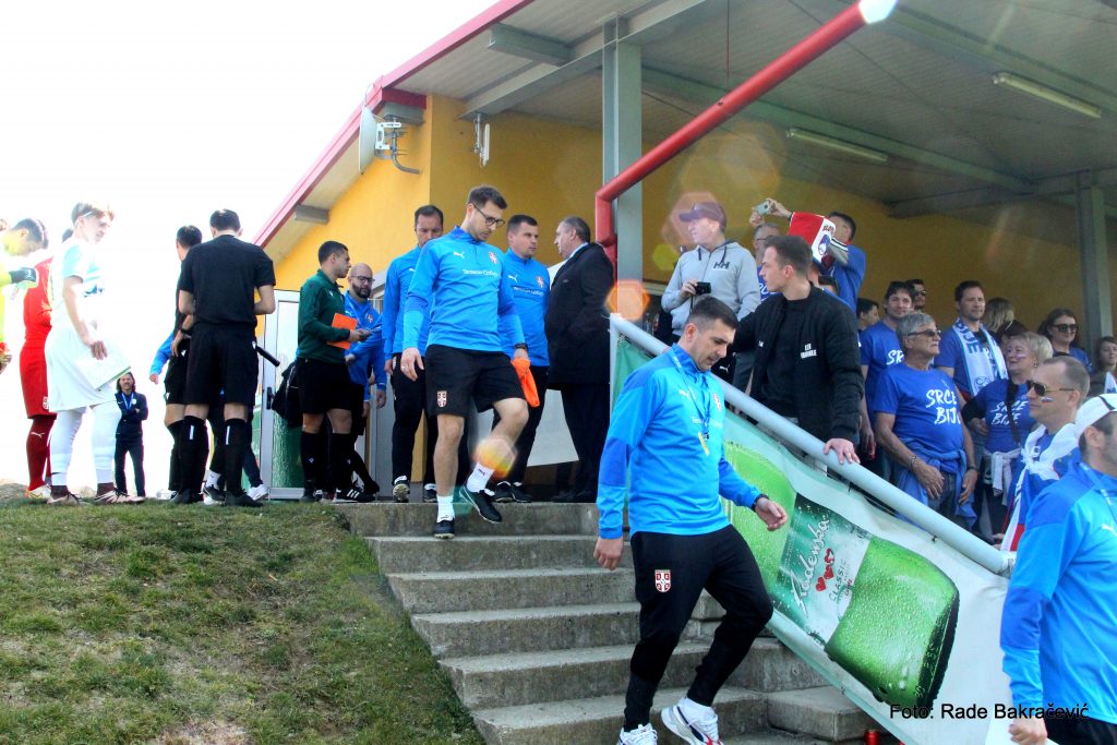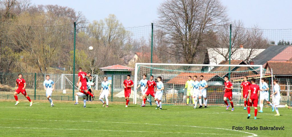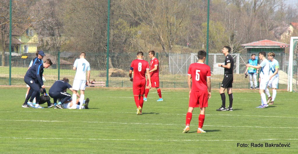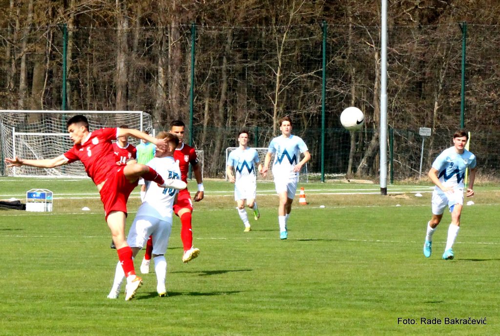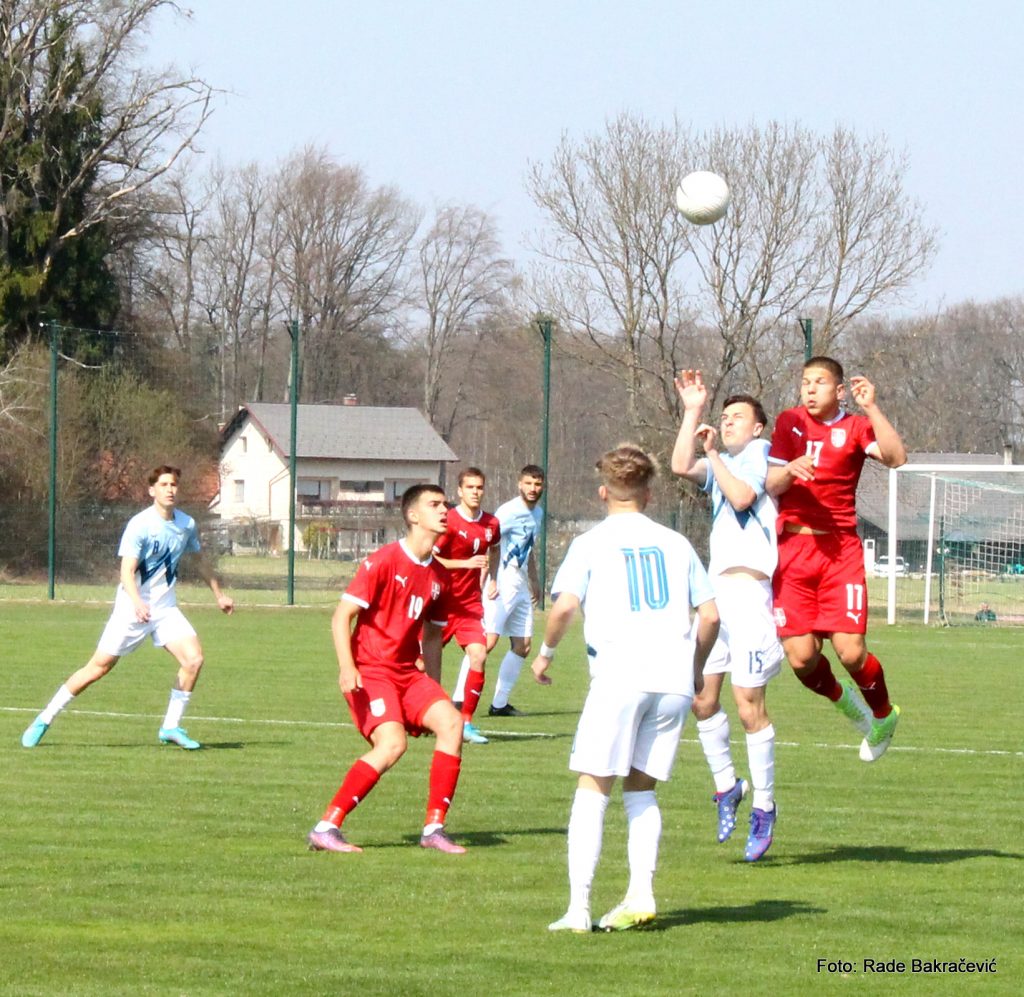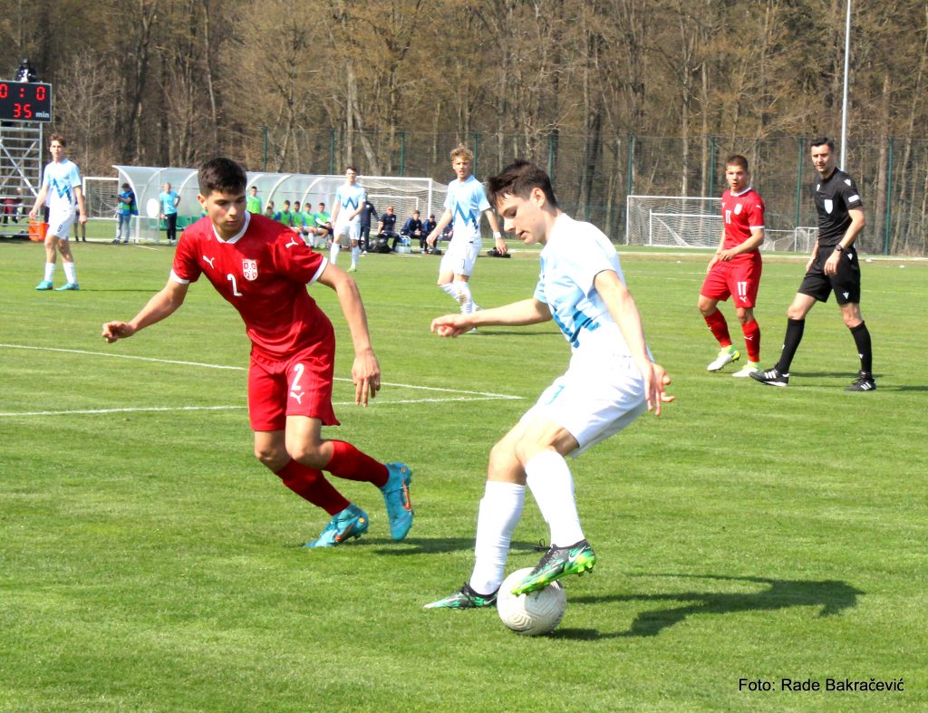 Srbi so prvo nevarnejšo akcijo izpeljali v 11. minuti. Mark Stojinović je žogo v zadnjem trenutku izbil pred Matejo Bubnjem, nato pa je Jovan Milošević streljal v naročje Lukasa Tomažiča. Srbi so se v novi priložnosti znašli v 17. minuti, ko je Mark Stojinović zaradi poškodbe obležal na tleh, Jovan Milošević pa je meril mimo desne vratnice Tomažiča. Pred domačim golom je bilo vroče tudi v 21. minuti, ko slovenska obramba ni uspela izbiti žoge. Jovan Mijatović je žogo poslal pred vrata, tam pa jo je zgrešil Mateja Bubanj, ki pa je bil pred tem v prepovedanem položaju.