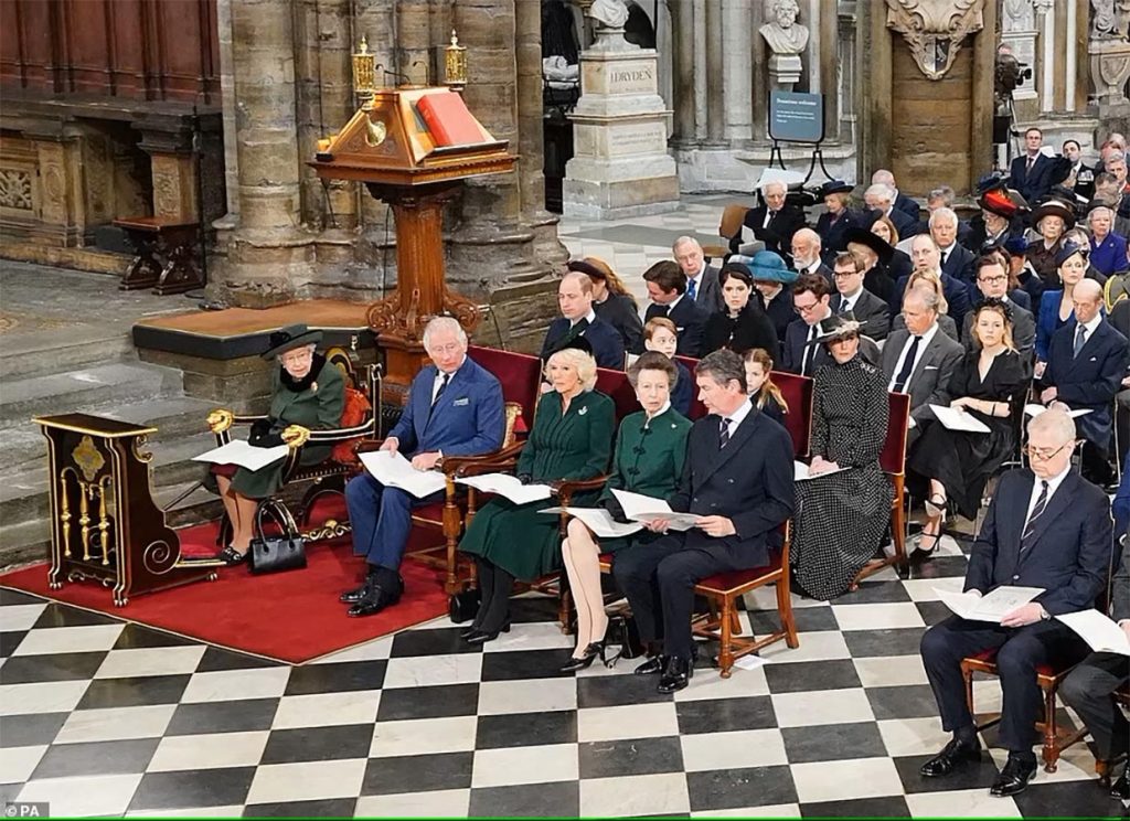 Поред бројних других уважених званица, помену су присуствовали чланови британске Kраљевске породице, предвођени Њ.В. Kраљицом, Њ.K.В. Принцeм од Велса, Чарлсом и Њ.K.В. Војвоткињом од Kорнвола, Kамилом, заједно са Војводом и Војвоткињом од Kембриџа, Њ.K.В. Принцeм Вилијамом и Њ.K.В. Принцезом Kатарином, Њ.K.В. Принцeм Џорџом и Њ.K.В. Принцезом Шарлот као и: Њ.В. Kраљ Kарл XVI Густав, Њ.В. Kраљица Силвија и Њ.K.В. Принцеза Kристина од Шведске, Њ.В. Kраљ Филип и Њ.В. Kраљица Матилда од Белгије, Њ.В. Kраљ Фелипе VI и Њ.В. Kраљица Летиција од Шпаније, Њ.В. Kраљ Вилем-Александар, Њ.В. Kраљица Максима и Њ.K.В.