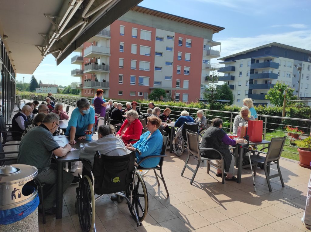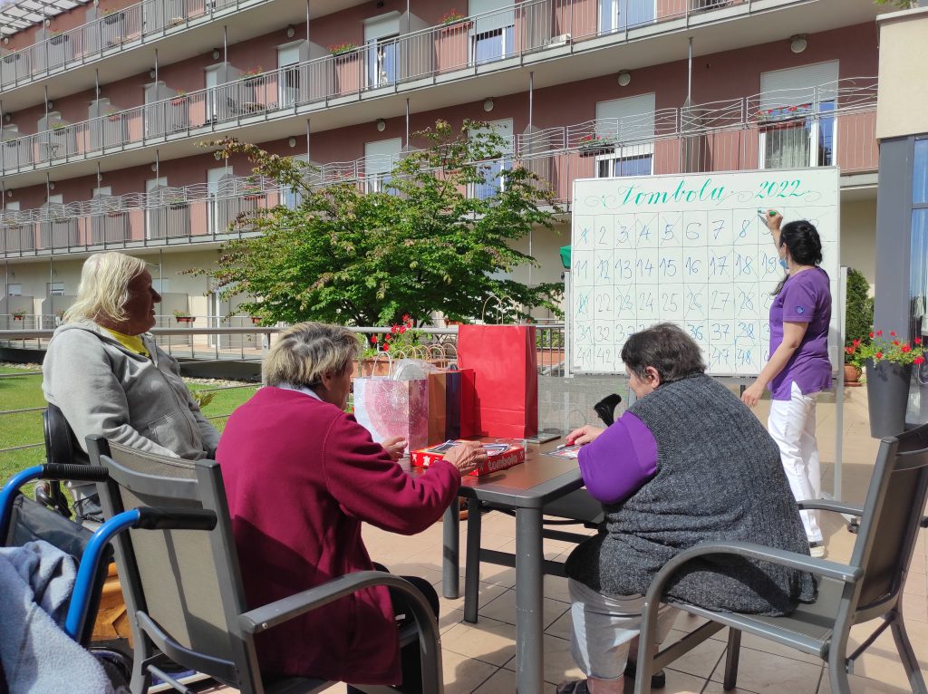 Radenci: 31. maj – Lep dopoldan je. Sonce sije, greje že kar toplo in na terasi doma SeneCura v Radencih je prav živahno. Stanovalke in stanovalci doma so se ob 9.30 zbrali pred veliko tablo z napisom “Tombola 2022”. Sedaj pa bo ! so vzkliknili nekateri, ki so že pričakovali darila.