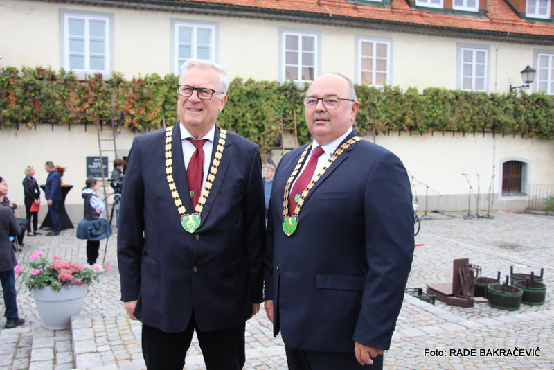 | (Maribor, 2. oktober 2022) Danes so na mariborskem Lentu že 36. obrali najstarejšo trto na svetu. 450-letna Guinnessova rekorderka je dala 66 kilogramov pridelka, prvi grozd pa je odrezal priznan vinski strokovnjak Robert Gorjak. Svečana trgatev je bila zaključno dejanje štiridnevnega Festivala Stare trte, v okviru katerega je Zavod za turizem Maribor izpeljal 12 dogodkov na temo vina, kulinarike in kulture. Trgatev po starih štajerskih šegah in navadah je skozi leta postala pravi mestni praznik, na katerega mestna oblast povabi pomembne goste iz Slovenije in tujine, spremlja pa ga tudi množica Mariborčanov in turistov. V kulturno-etnografskem programu pred Hišo Stare trte so tradicionalno sodelovali mariborski župan Saša Arsenovič, skrbnik Stare trte Stane Kocutar, 12. mariborska vinska kraljica Neža Jarc in brači iz Malečnika. Glasbeni gostje prireditve so bili Jože Zadravec trio in Natalija Tumpej, ki je tudi zapela uvodno Himno Stari trti, ter Vokalna skupina Kresnice, zaplesali pa so folkloristi AFS Študent. Čast odrezati prvi grozd in s tem uradno pričeti trgatev je letos pripadla Robertu Gorjaku, mednarodno uveljavljenemu in enemu vodilnih slovenskih vinskih strokovnjakov. Skrbnik najstarejše trte Stane Kocutar je tako povzel trtino leto: “Trta nas je v letu, ko mineva pol stoletja od znanstvene določitve njene starosti, nekoliko bolj kot običajno zaposlovala s skrbjo za varstvo pred boleznimi, vendar pa je dan trgatve dočakala v dobri kondiciji s pridelkom, ki razveseljuje,” ter dodal: “Zadnjič opravljamo trgatev s podobo njenega širšega rastišča, kot smo jo poznali zadnjih 36 let. Že prihodnje leto bo njena bližnja okolica prostorsko drugačna, kar pa ne bo vplivalo na kakovost rastnega prostora in nas bo tudi v novi različici urejenosti neposredne okolice razveseljevala s številnimi dobrimi letinami.” Guinnessova rekorderka je letos obrodila 66 kilogramov grozdja (njeni potomki, ki so ju obrali že v petek, sta dali 182 kilogramov). Tadeja Vodovnik Plevnik s Kmetijsko gozdarskega zavoda Maribor je razglasila, da je grozdje Stare trte zdravo in dozorelo, letošnji vinski letnik pa opisala kot eden najzgodnejših po času dozorelosti. Mestnega praznika so se tudi letos udeležili posebni gostje iz Prage, kjer se na znamenitem Praškem gradu nahaja eno najimenitnejših rastišč potomk najstarejše trte na svetu (teh je do sedaj na tujem skupno 96).Delegacija gradu z direktorjem Ivom Veliškom na čelu – temu je kot prvemu tujemu gostu pripadla čast odrezati prvi grozd na mariborski svečani trgatvi leta 2015 – je s seboj prinesla del svojega letošnjega pridelka, ki ga bodo dodali danes nabranemu. |