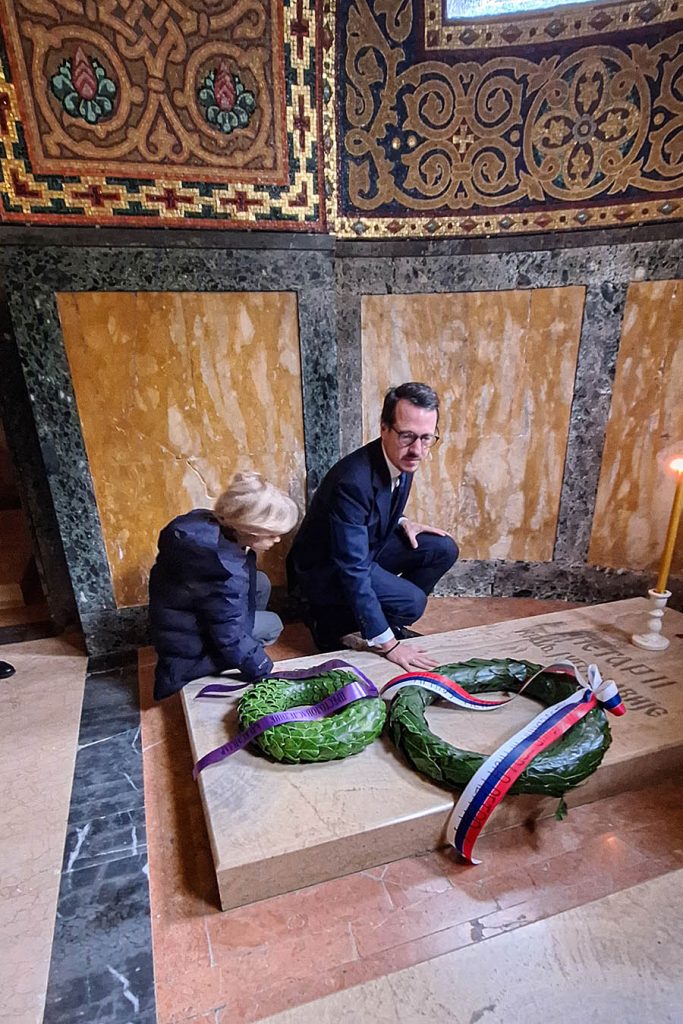 Опленац, 3. новембар 2024. – Њ.К.В. Принц Наследник Филип, Њ.К.В. Принцеза Даница, Њ.К.В. Принц Алекандар, Њ.К.В. Принц Стефан и Њ.К.В. Принцеза Марија присуствовали су данас парастосу поводом 54. годишњице смрти Њ.В. Краља Петра II у Маузолеју краљевске породице, цркви Светог Ђорђа на Опленцу.
