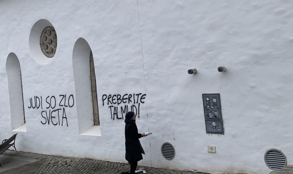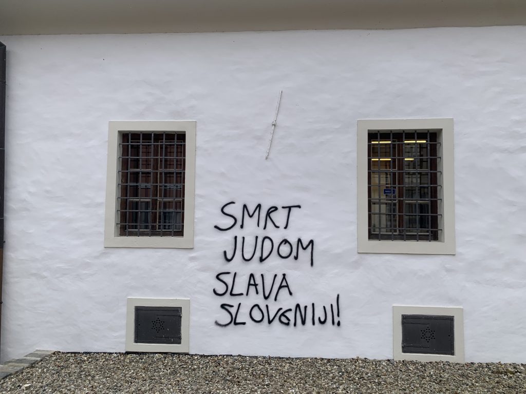 SINAGOGA MARIBOR POČEČKANA Z ANTISEMITSKIMI NAPISI