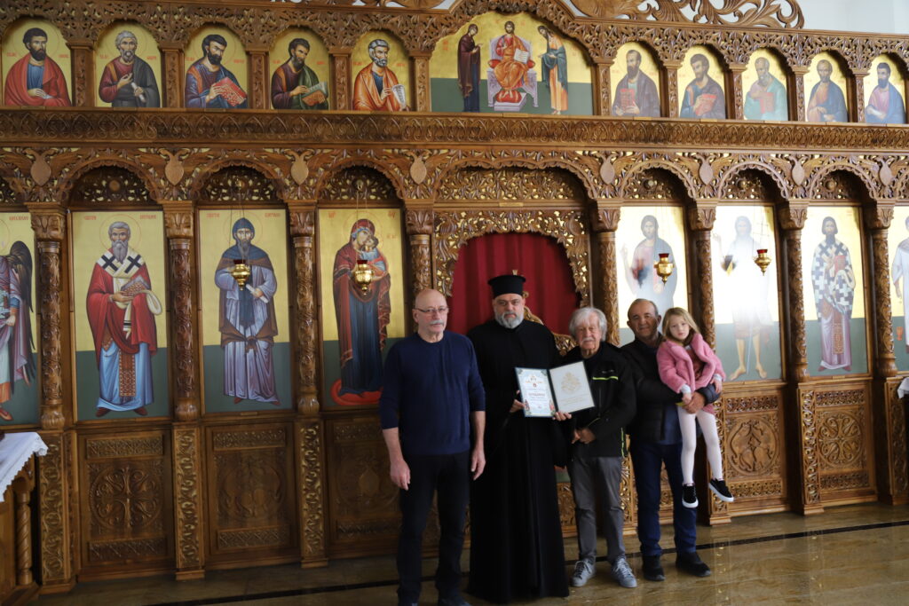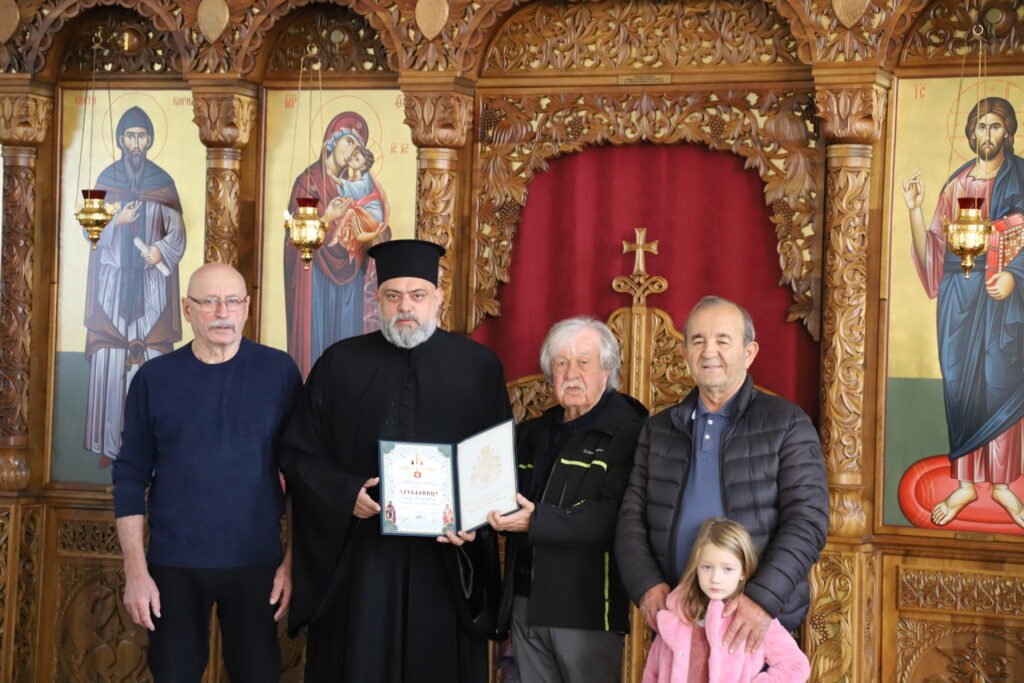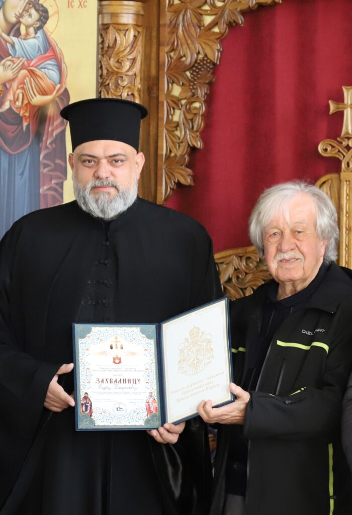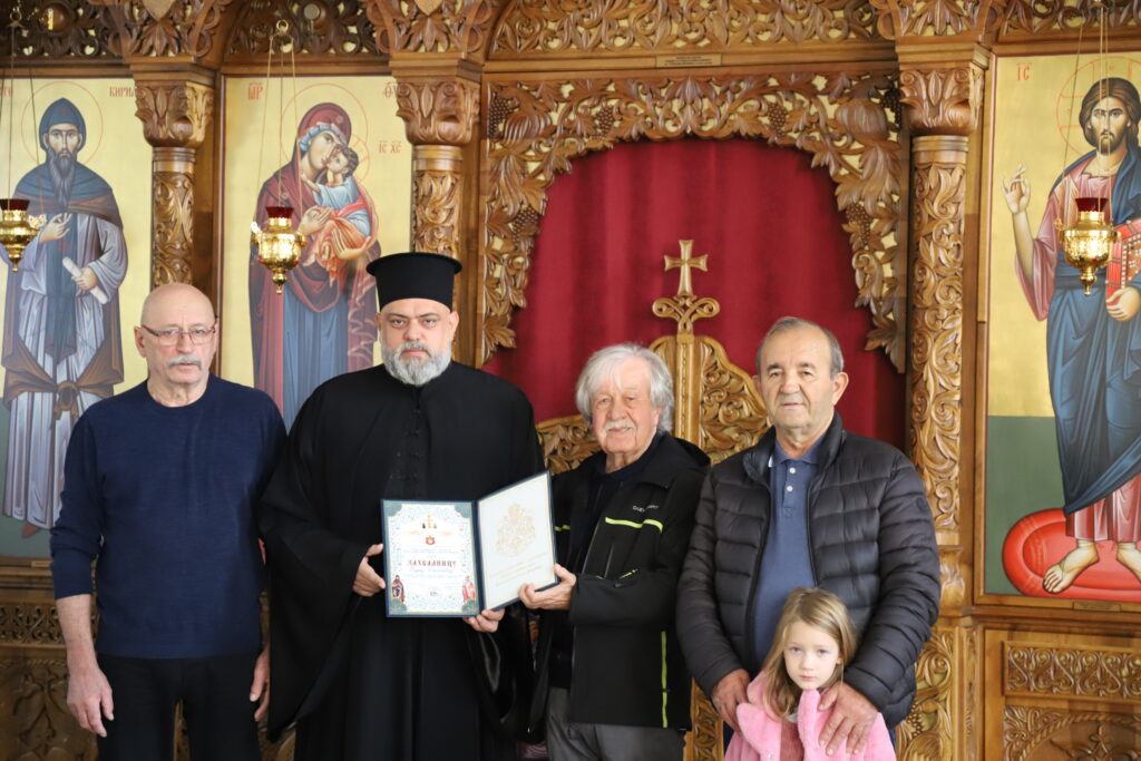 Захвалницу је Радету Бакрачевићу у присуству чланова Црквеног одбора предао Протојереј Саво Косојевић, старешина Храма и Први парох Мариборски са Благословом Божијим.
