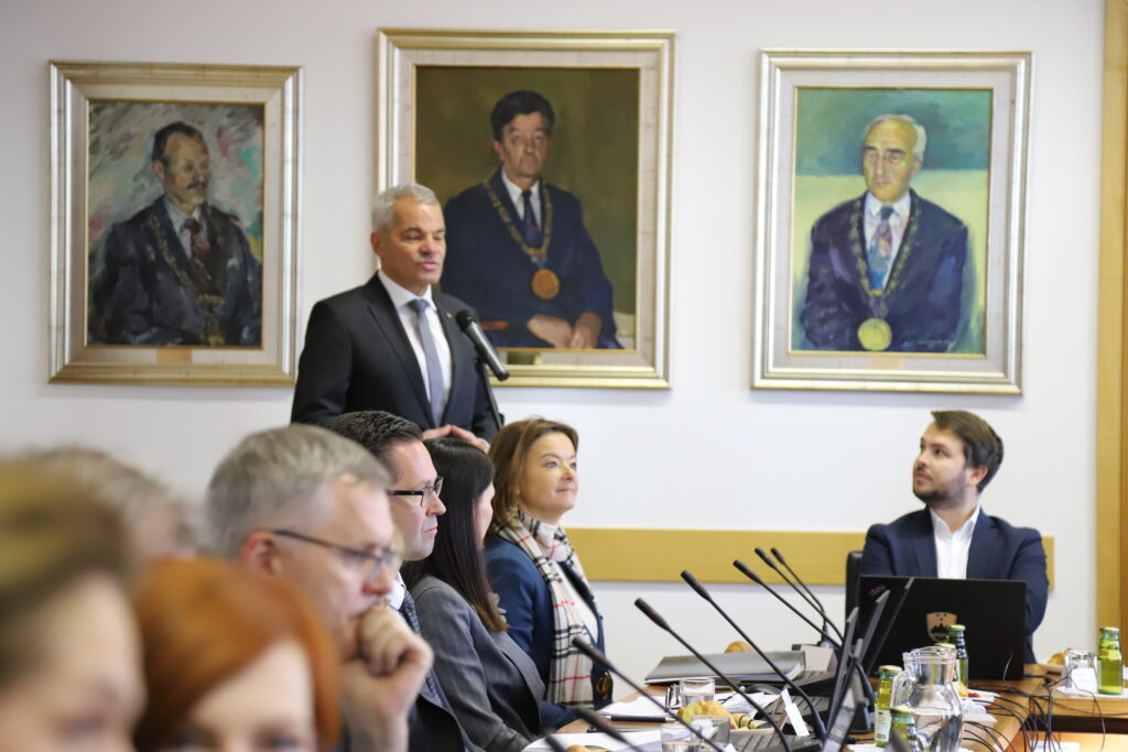 V okviru vladnega obiska v Podravju se je premier dr. Robert Golob udeležil položitve temeljnega kamna za Center odličnosti za fotonske, mikro in nano elektronske tehnologije. Gre za enega izmed prvih in ključnih izvedbenih projektov širšega programa INNOVUM Univerze v Mariboru, zbrane je tudi nagovoril.