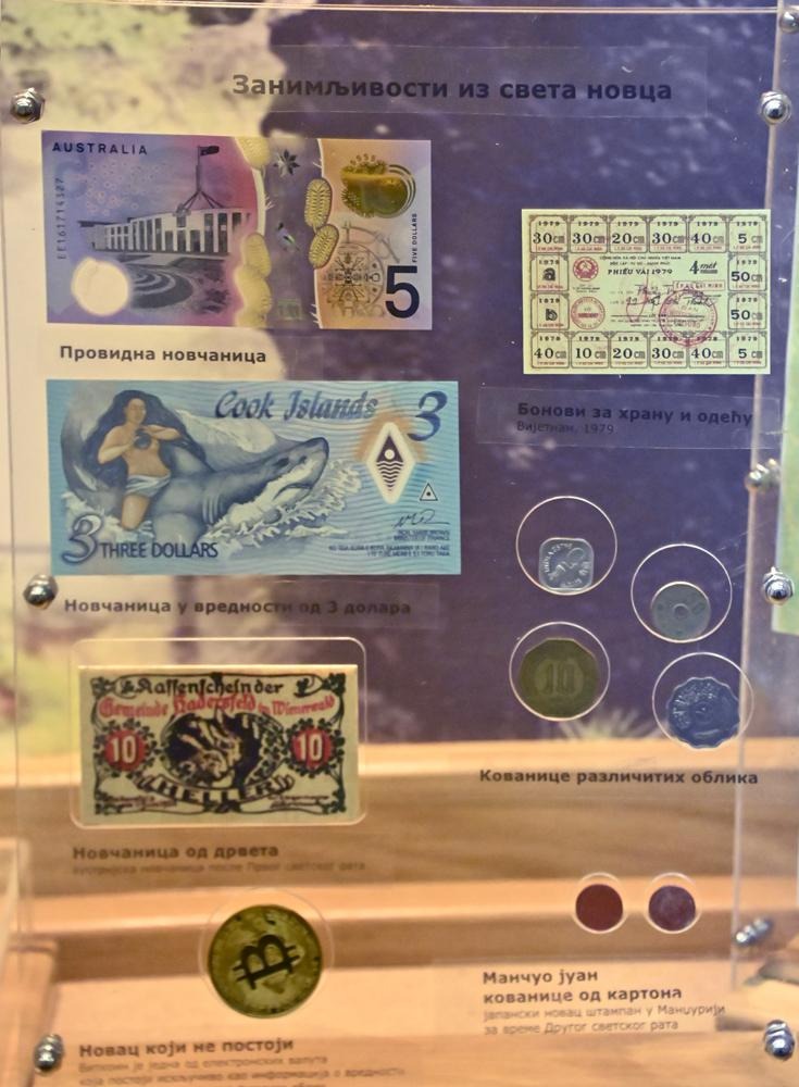 Pored štampanog materijala u „Malom muzeju“ moći će da se vide i primeri raznih ekstrema kada je novac u pitanju. U postavci se nalaze primeri najstarijeg, najmanjeg i najvećeg novca, novčanica i kovanica sa najviše nula, novac neobičnog oblika i materijala, kao i novac koji je korišćen u poznatim filmovima i kompjuterskim igrama. Neki od izloženih eksponata su originalni, a neki specijalno izrađeni za potrebe „Malog muzeja“.