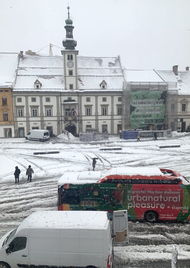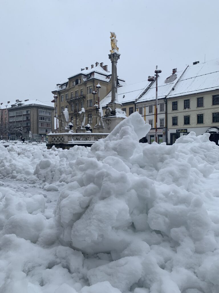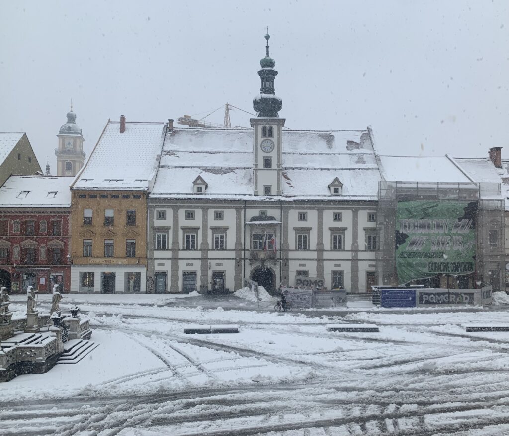 Mariborski Glavni trg ponovno pod snežno odejo