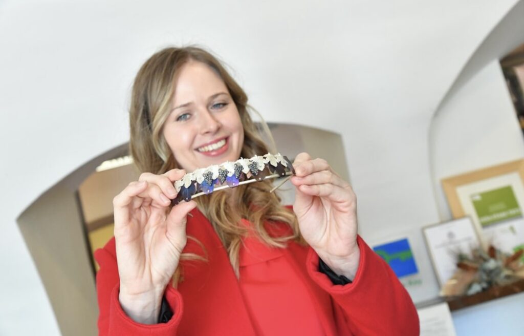 Iz Zavoda za turizem Maribor so me kontaktirali tudi zaradi mojih preteklih uspešnih projektov vezanih na Mestno občino Maribor. V preteklosti sem bila prvoizbrana na natečaju za ‘protokolarno darilo’ Mestne občine Maribor. Pri izdelavi unikatne krone, ki je narejena iz srebra in titana sem upoštevala vinorodno tradicijo naše regije. Prva mariborska vinska kraljica z novo krono je bila Neža Jarc.
